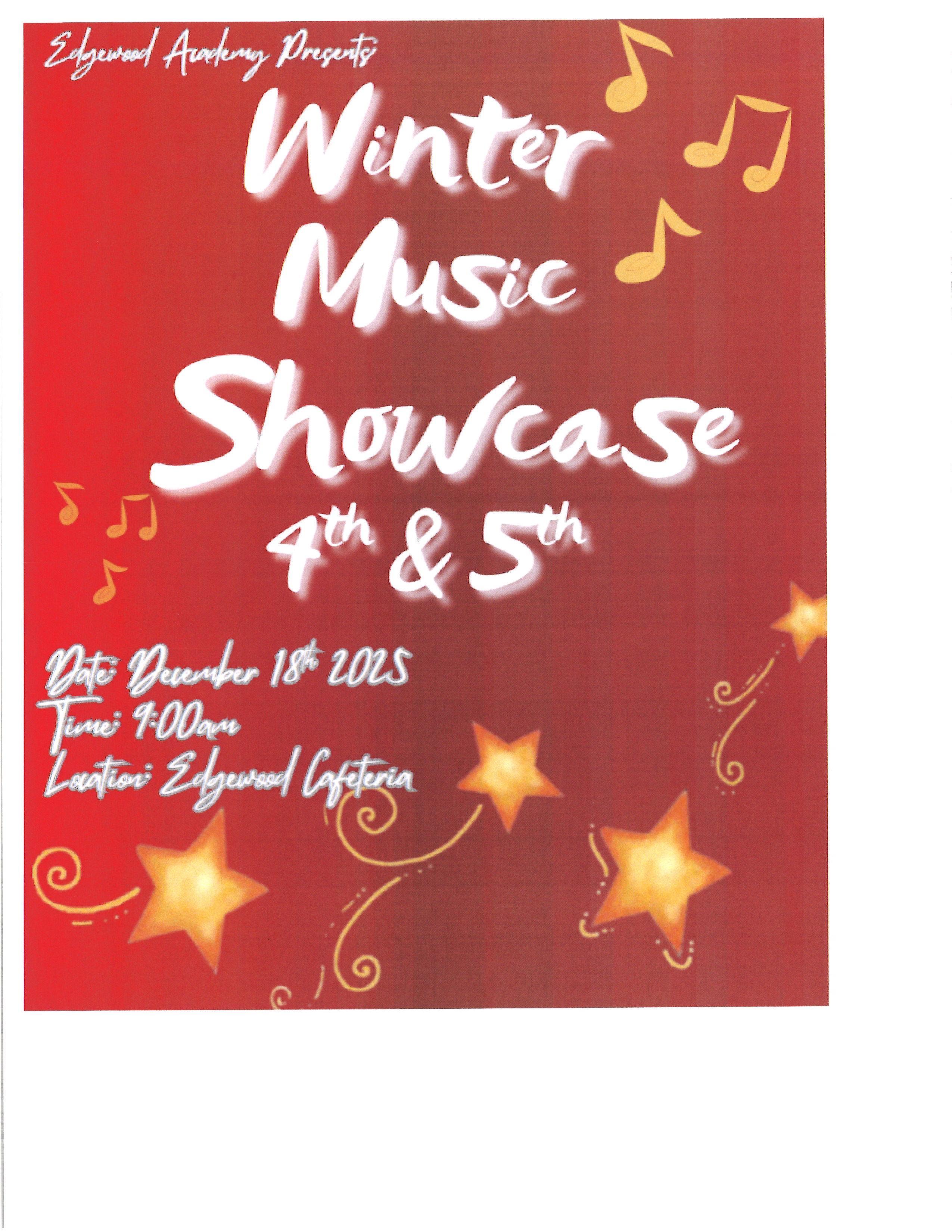 Winter Performance 4th and 5th Grade 9 am Thursday December 18/Concierto de Invierno 4 y 5 grados Jueves 18 de Deciembre