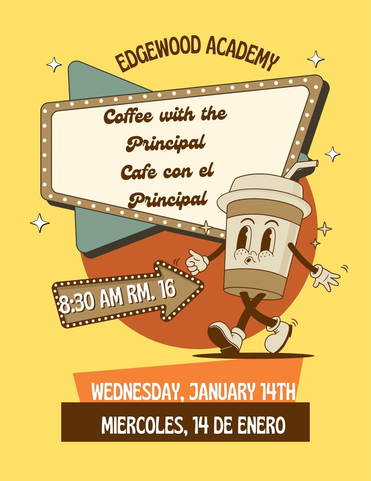 Coffee with the Principal Wednesday, Jan. 14 8:30 am/Cafe con el Principal Miercoles, 14 de Enero 8:30 am